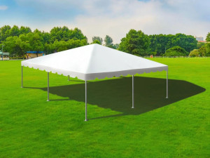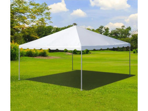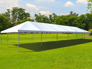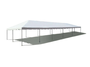 NEW ADDITION FOR 2026! Our 15×30 frame tent is a great solution for narrower driveways or backyards, or any tight area where a standard 20-wide tent won’t fit. Similar in size and look to our very popular 20×30 frame tent only a bit narrower. Can be staked or weighted on any surface. Seats up to 60 guests at 6 8-foot tables. Round tables are possible, but not generally recommended for this tent due to the narrow width. Provides 450 sq/ft of coverage.